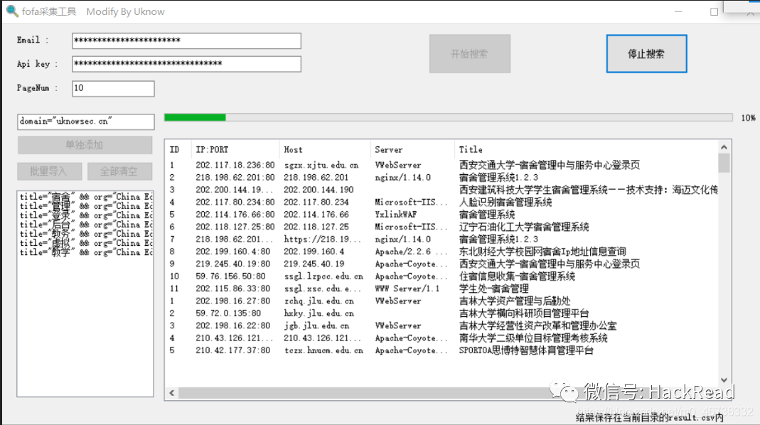 由于举例子,就用fofa采集工具去批量采集edu资产来做演示,有fofa会员更好,资产相对多一些。