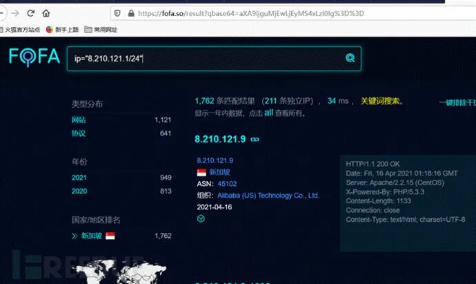 2、当通过上述方式的找到test.com的特征后,再进行body的搜索,然后再搜索到test.com的时候,此时fofa上显示的ip大概率为test.com的真实IP。
