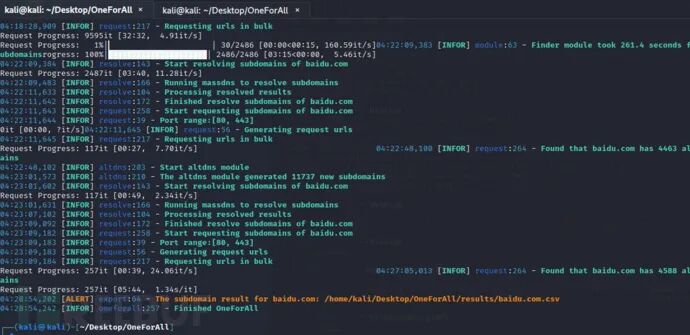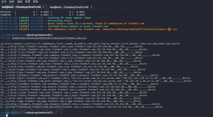 当你想获取更多信息的时候,可以使用-d进行深度爬取来获得更多内容,并使用命令 -ou, -os来指定URL和子域名所保存的文件名