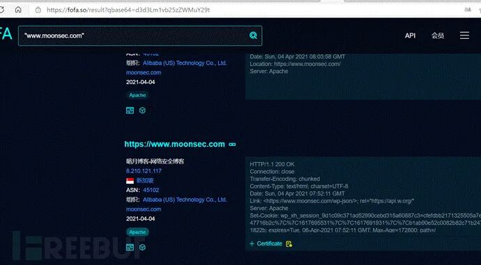 钟馗之眼 site=域名即可 https://www.zoomeye.org/