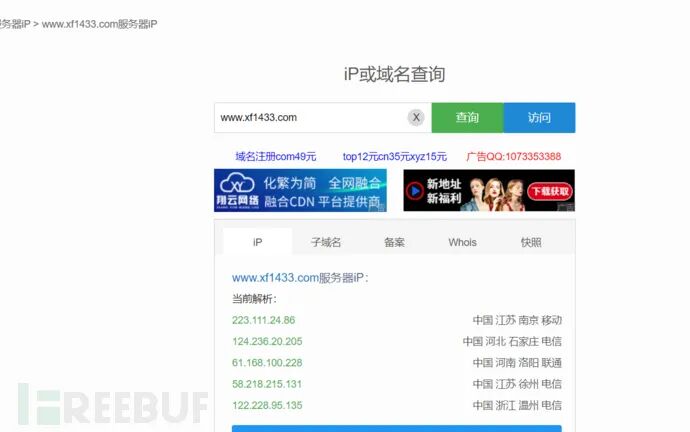 旁站:一个服务器上有多个网站 通过ip查询服务器上的网站