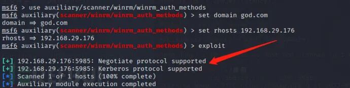 use auxiliary/scanner/winrm/winrm_auth_methodset domain god.comset rhosts 192.168.29.176exploit