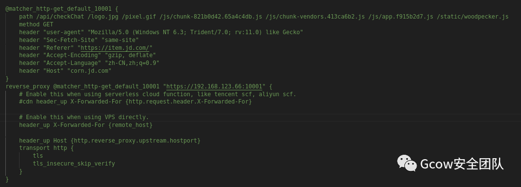 4、结合上述三点,在Caddy配置文件里面可以这样呈现
