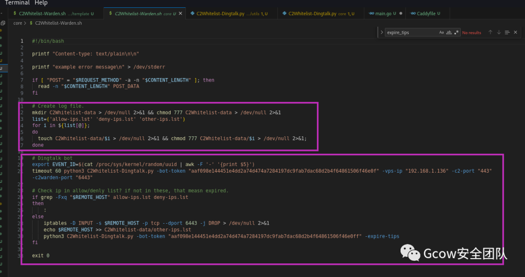 4、后端脚本,bash脚本负责初始化,然后后面交给python脚本处理,60秒过后放行(依旧不能上线CS)