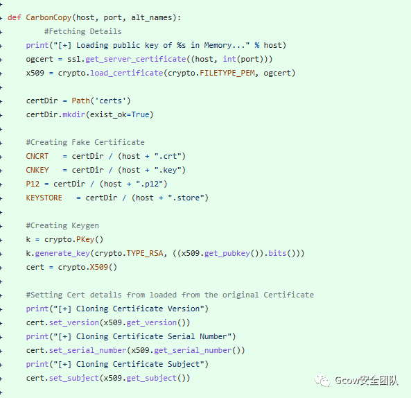 1、原先是用carboncopy的思路,使用python库去伪造SSL证书,后面在实战过程中遇到了很多奇奇怪怪的问题,上不了线,Caddy提示证书有问题之类的情况(mkcert项目也一样的情况)