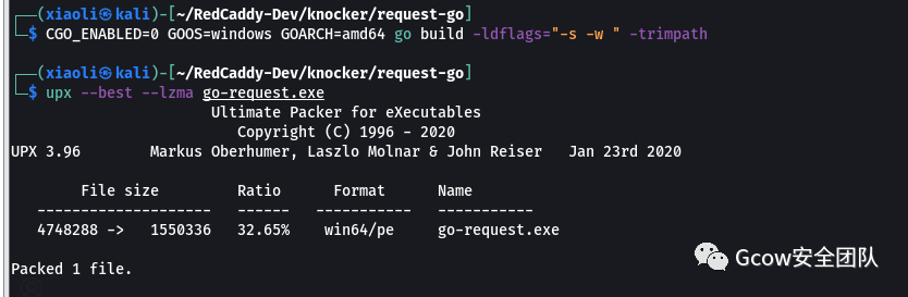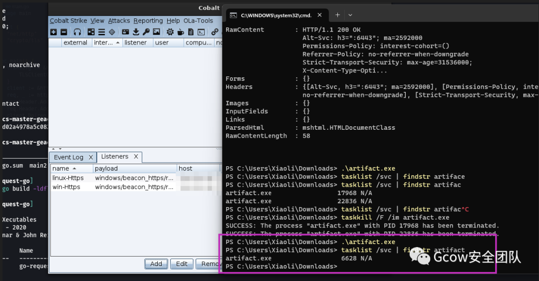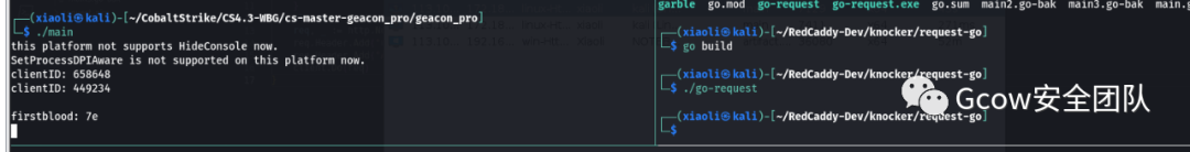 2、可以使用go写一个敲门的东西触发请求(用完记得删),落地到受害者机器上执行