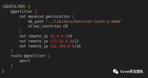 1、从RedWarden学来的思路,我们还可以用GEOIP来限制国家IP上线,本人的话就限制只能CN上线即可