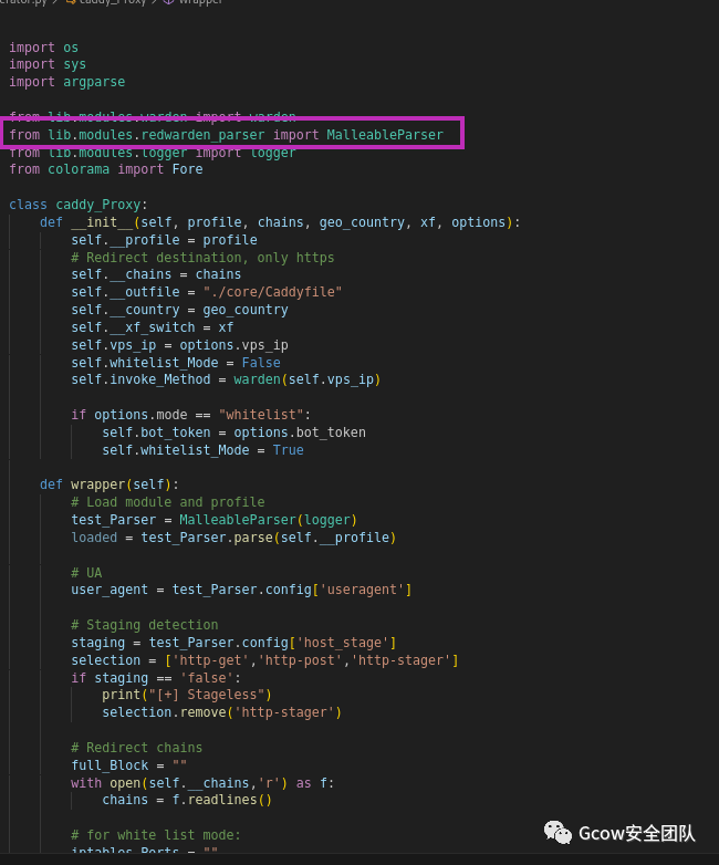 1、要封装成一键生成Caddy配置文件的脚本,首先用到的是来自RedWarden的CobaltStrike Malleable Parser,用来读取CS Profile,获取http-stager / get /post (默认),但是我自己用的profile还合并了 http-get / post (geacon),应对这种复杂的profile,只有RedWarden的parser写得很好