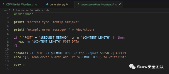 1、善用CGI模块,即可做出一个白名单模式去保护Teamserver后端,使用特殊头 + 特殊链接访问触发添加iptables接受来源ip流量,才能访问到teamserver连接端口
