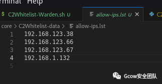 白名单模式下的转发链,https后面直接接入关键字warden不接IP,表示这个端口将会是作为Teamserver + beacon上线的白名单开关