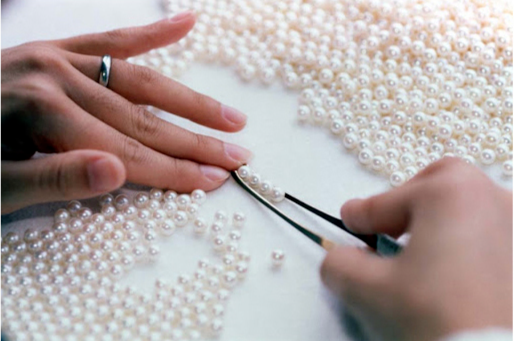 严选珍珠过程:日本匠人从养殖场挑选第一轮后,贝诗的挑珠师亲赴当地进行二次挑选。 制作成品前还要再过一关:由经验丰富的匠人全手工拣择优劣汰,严苛测量,优中选优后再进行制作。