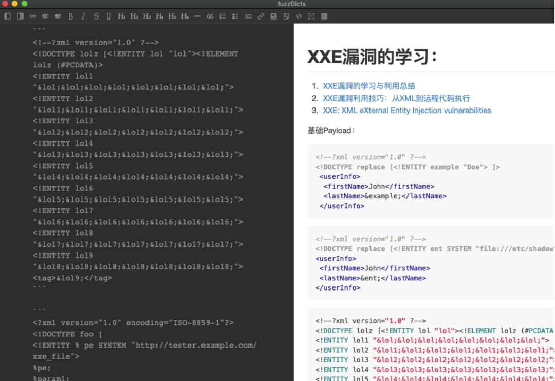 https://github.com/TheKingOfDuck/fuzzDicts/tree/master/XXEDicts