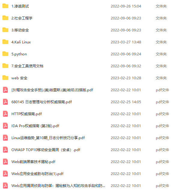 内容非常多,面试题、经典书籍笔记、安全工具、免费视频等等。如果你也对网络安全感兴趣,那么无论你是否参与HVV,都建议你收藏认真学习这些文档和工具。