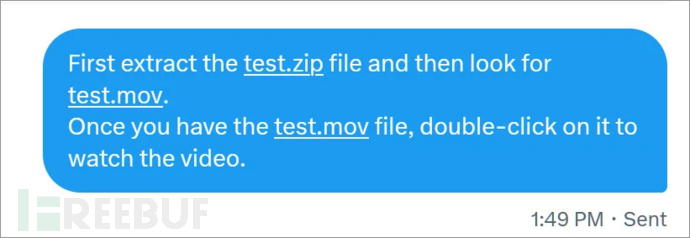 例如,在Twitter上,如果你向某人发送zip文件和访问MOV文件的说明,这些无害的文件名会被自动转换成URL,如下图所示。
