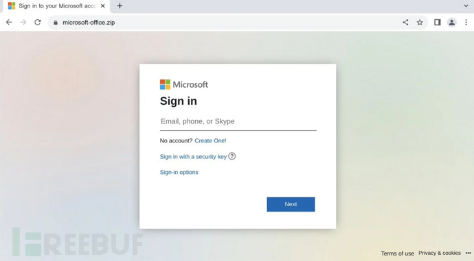 滥用这些域名并不是理论上的,网络情报公司Silent Push Labs已经在microsoft-office[.zip上发现了一个类似钓鱼的页面,试图窃取微软账户的凭证。