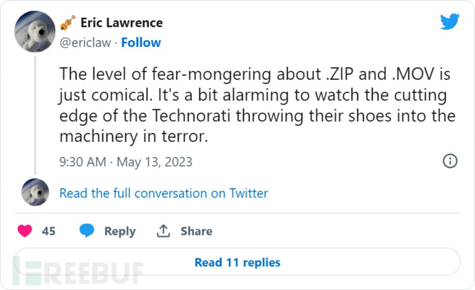 与此同时,其他安全研究人员和开发人员,如微软Edge开发人员Eric,也表示他们认为关于这些新域名的担心是过度的。