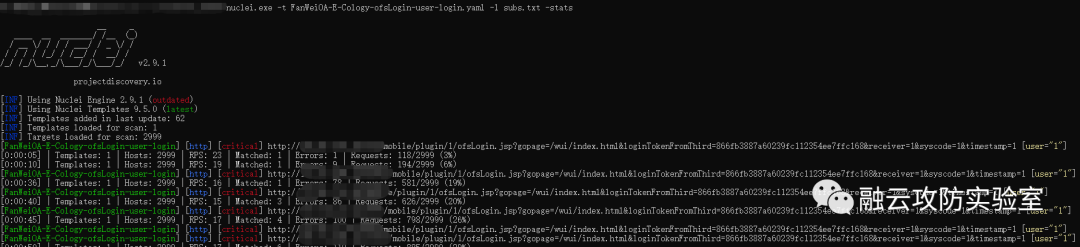 nuclei.exe -t FanWeiOA-E-Cology-ofsLogin-user-login.yaml -l subs.txt -stats