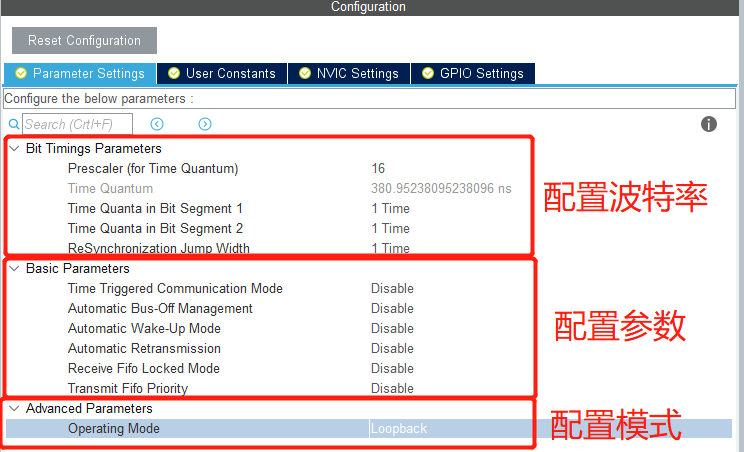 问题:Basic Parameter分别是啥意思呢? Timer Triggered Communication Mode:否使用时间触发功能 (ENABLE/DISABLE),时间触发功能在某些CAN 标准中会使用到。