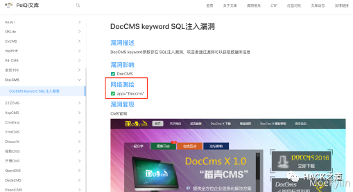 使用佩奇文库:http://wiki.peiqi.tech/wiki/cms/ 文库内部分漏洞存在可用POC,可提供我们测试学习,感谢大佬。