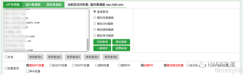 针对爱站PC、爱站PE、GooglePR筛选查询结果