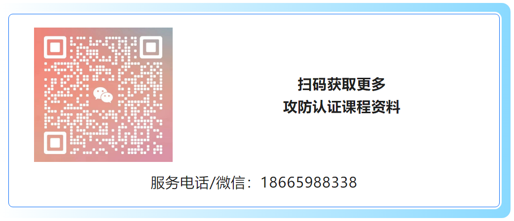 作为官方授权培训机构:承制科技针对认证考试制定了专业的教学课程设置,全面、深入地讲解考试内容;拥有业界从业多年教学经验的大咖讲师,为学员提供高水平、贴近实战的课程内容和讲解;专属班主任全程班级群服务,讲师实时解答学员问题;靶场24小时开放, 完善的实践环境助力学员更好地进行考试模拟实操。