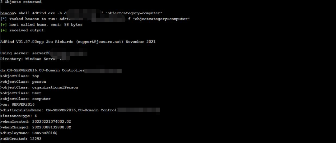 AdFind.exe -sc computers_active name dnshostname查看详细域内机器