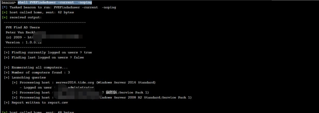shell AdFind.exe -h 192.168.100.10 -sc u:tideone userWorkstations使用PVEFindaduser查看当前用户胡登录的主机