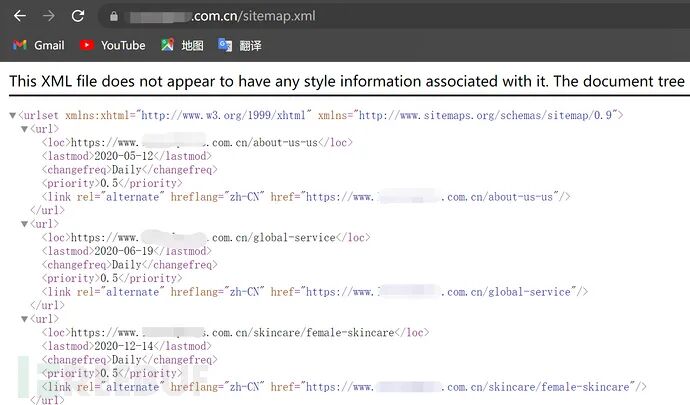 确定CMS为Sitecore,访问 /api 是403,访问Sitemap: