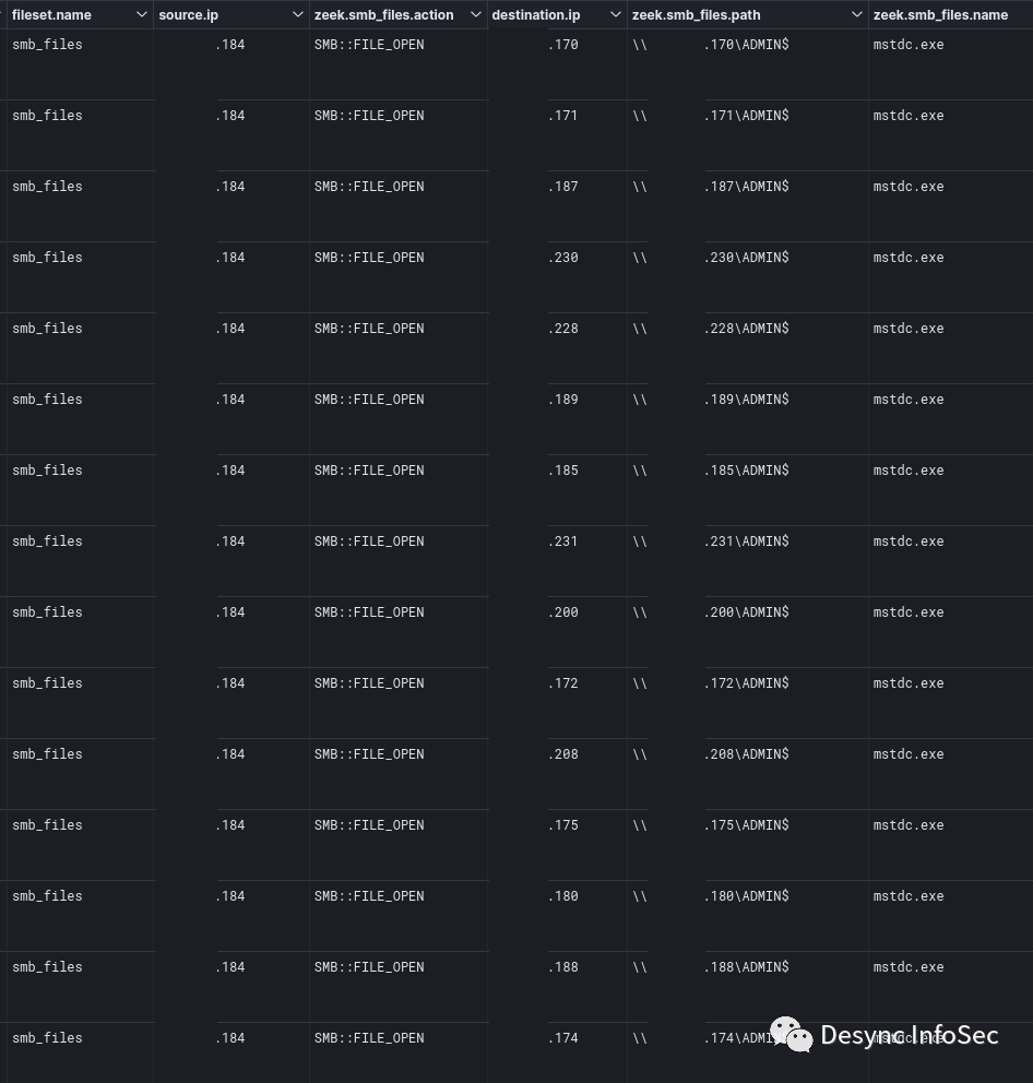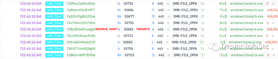 在勒索软件部署阶段,攻击者通过SMB传输PsExec程序,并重命名为mstdc.exe.