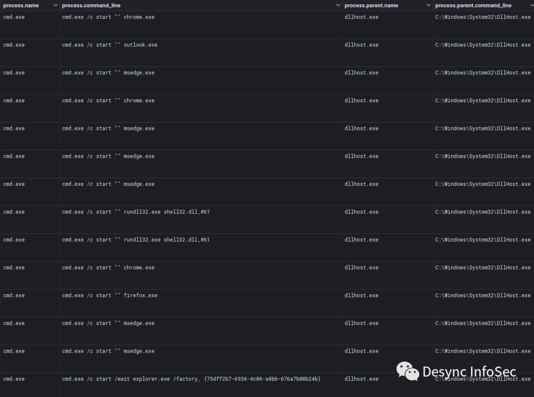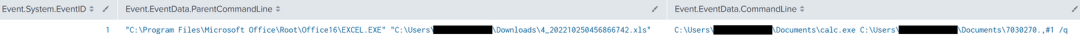 我们发现是Excel作为父进程调用的calc.exe加载DLL进程。
