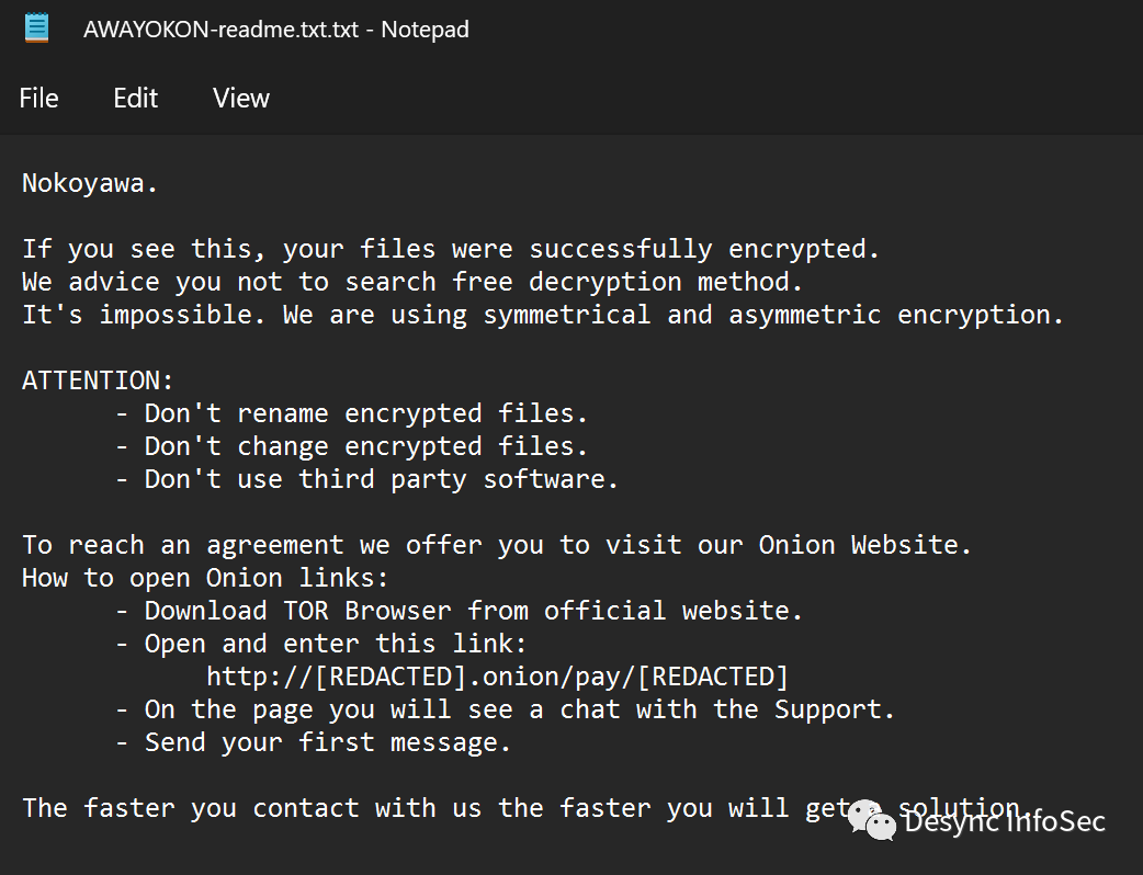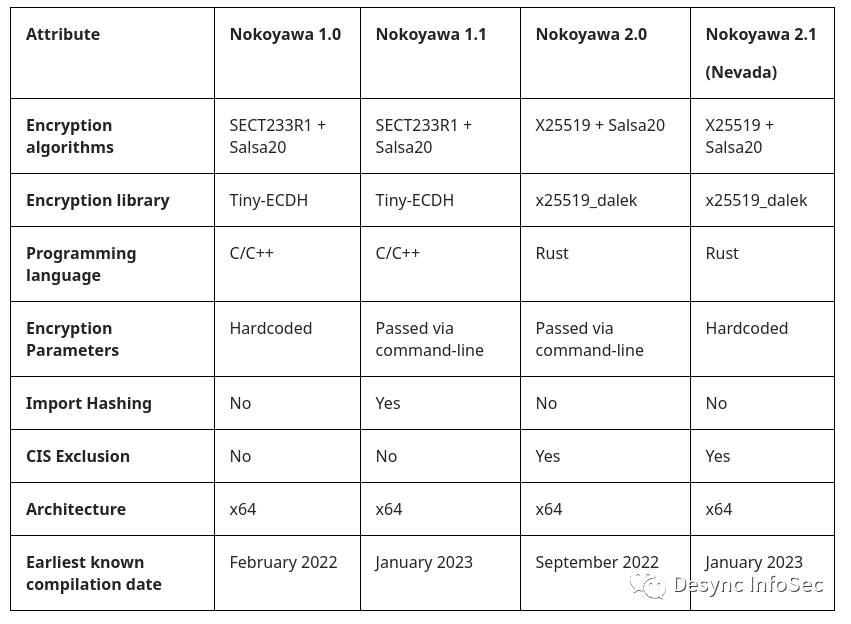 一旦攻击者获取到主机权限,便开始加载Cobalt Strike载荷,利用RDP进行横向移动,使用PsExec在域范围内传播Nokoyawa勒索软件。根据其他安全专家的分析,Nokowaya勒索软件与Karma/Nemty勒索软件家族(https://www.sentinelone.com/labs/nokoyawa-ransomware-new-karma-nemty-variant-wears-thin-disguise/)/(https://www.fortinet.com/blog/threat-research/nokoyawa-variant-catching-up)有关。
