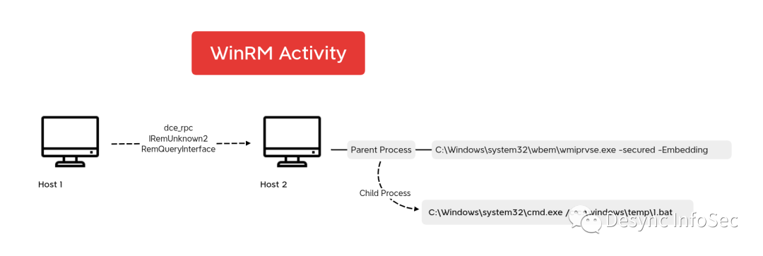 我们通过父子进程树和DCE RPC流量发现攻击者使用WinRM工具在远程主机中执行命令的行为