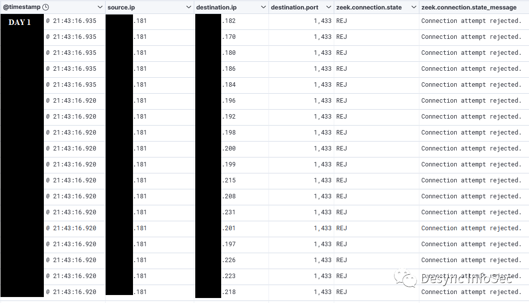在入侵第一天的基础信息收集后,攻击者对企业内网中的SQL Server数据库资产进行了扫描