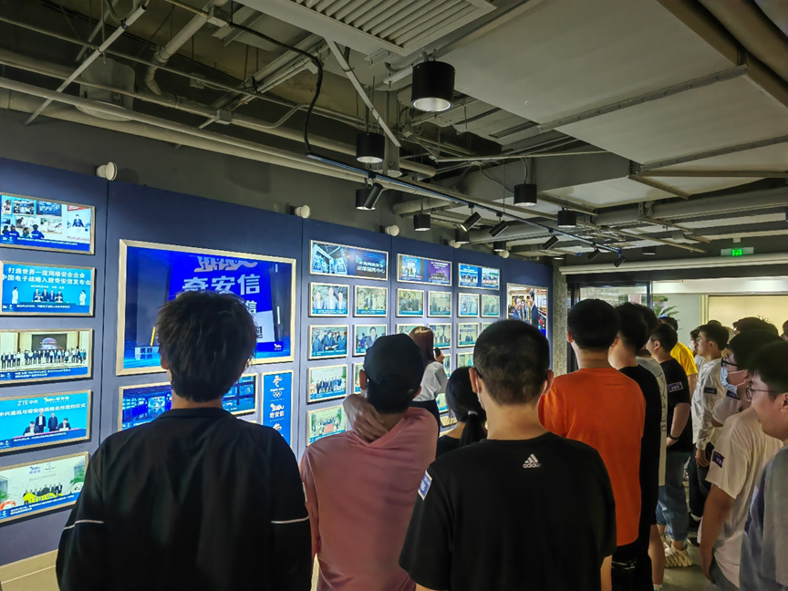 首先,在负责人的带领下,同学们参观了奇安信安全展览展示中心,了解奇安信的发展历程、公司特点和主要业务等信息。大家还参观了工业互联网安全相关展厅,与生产生活中的工业互联网设备进行了近距离的接触,真切的体会到了保障工业互联网安全的重要性和必要性。