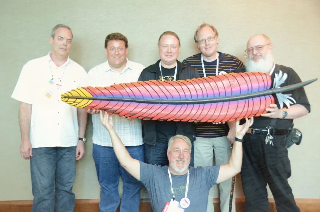 所以,微众银行的老师傅,从第一天起就背负两个使命:有一个人,全天候24小时都在思考这个问题,他就是微众银行的副行长,首席信息官马智涛。大家平时都喜欢称呼马智涛的英文名 Henry,后面我也叫他 Henry 吧。每次和 Henry 聊天我都非常期待。第一个原因是。。。我们俩都喜欢哆啦A梦;第二个原因是,他以一种极高的自尊对待技术这个职业,并且以同样的高自尊要求微众银行所有的技术老师傅。美国作家大卫·布鲁克斯曾经写过一本书,叫做《第二座山》。他把人生的追寻比喻成两座山,爬第一座是为自己,爬第二座是为他人。“为自己”这座山爬到顶峰会成为一个“厉害的人”,而“为他人”这座山的顶峰则是成为一个“有用的人”。实际上最大的区别就是:厉害的人,别人可能会怕他;有用的人,别人一定会爱他。在我看来,Henry 心中“技术人的高自尊”,就包括这两座山:技术人要在第一座山上“练武”,更要在第二座山上“传武”。自从2014年微众银行成立,到今天已经八年多。这群老师傅用代码积沙填海,从0个客户扛到了如今3.6亿客户,这就是技术人精进武艺的本分,也就是我所说的“练武”。而从2017年开始,微众银行把自己练就的武艺中最独特的“几门功法”陆续开源了出来,让全世界的武林中人可以随意研习,这就是我所谓的“传武”。如果仅仅是打开武馆大门,来人想学就学,学完就走,那这件事儿终究会变成“行为艺术”,就算家里有矿也会越做越没劲。而微众银行的故事走向却非常不同。他们打开武馆后,不仅有人络绎来学,还有更多的武林中人自愿留下来,和老师傅一起探讨拳路,不断改进功法,从而让“微众的武馆”变成了“武林的武馆”。于是此处渐渐熙攘,大师云集,成为天下侠客心中一处精神栖息地。了解一个人,有个好办法,就是去看ta童年的照片。了解一群人,也是如此。那是2014年春天,微众银行尚在筹备,创始技术团队连办公室都没有,只好“打游击”。这张照片,就是他们“游”到一家饭店的包间拍的。后排中间的老哥就是 Henry。注意,他背后的不是啥黑板,而是把一张纸贴在电视上,用来讨论技术。。。眼看银行开业在即,究竟要选个啥样的IT架构,还没有最终定论。