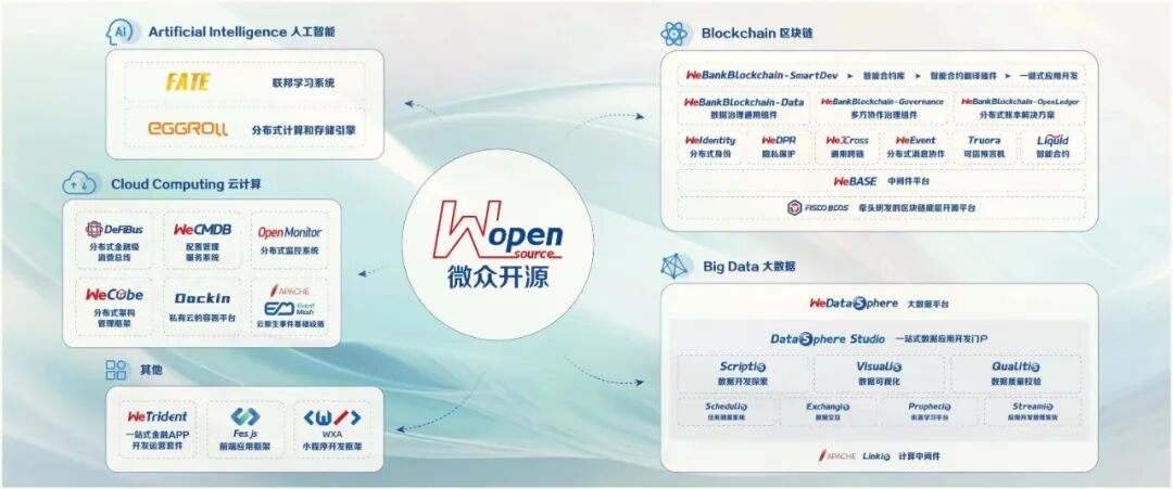 这就是所谓的“开放银行”。一个开放银行系统,承受几亿人潮水一样的访问冲击,很合理吧?可那毕竟是“将来”,开放银行究竟能做多大,多久能做大,中间需要肿么调整姿势,只有天知道。你搞一个高铁一样死贵死贵的僵化的的集中系统,万一事情发展跟你预想的不一样,不就gg啦。。。最聪明的办法,当然是先搞“几辆车”试着跑一跑,业务多些了再加“几辆车”,业务再多了就再加几百、几千辆车嘛!经过我这么一解释,你就能看懂 Henry 在白纸上画的那个图了。这个架构恰恰就是“一只羊也能赶,一万只羊也能放”的分布式架构。(这个故事我写在了《微众银行的1800天》里,有兴趣可以去复习~)一片绿意盎然的森林里,散坐着一群眉头紧皱的老师傅,他们跟幼稚园大班的小朋友一样手里拿着各种“乐高”积木,正在来回拼插。而一个架着厚厚镜片的老哥穿梭在他们中间,看看这个,看看那个,若有所思。卢道和,大家都爱叫他道哥,人如其名,知命天道,气蕴平和。作为微众银行基础科技的负责人,道哥的任务是把 Henry 在那张图里吹的牛给实现出来。可在此之前,地球上就没人用分布式架构做过银行系统,想抄作业都没处抄,想花钱买也没人卖,再平和的人也平和不了啊!好消息是,腾讯的分布式数据库(TDSQL)团队,愿意和微众银行的技术团队一起攻坚,搭建银行的存款核心系统,通俗理解就是那个“账本”(这段故事我写在了《腾讯偷塔》里,浅友们可以复习~);坏消息是,开银行不能只靠一个账本啊,你还得有大数据系统、用户服务系统。。。少说也得百十来个系统才能凑齐一整套梁山好汉吧。宝宝心里苦,宝宝不能说。道哥只好带着大伙儿去“打野”——看看这世界上都有什么开源模块,然后“采摘”过来怼在一起,凑出完整的系统——于是便有了大家坐在野地里“拼乐高”的盛景。这里不妨暂停一下,问你个问题:道哥他们为啥能找到这些“野生代码”?换句话说,这世界上到底为啥会有人把自己辛辛苦苦写的代码开源出来,让别人免费用?!我把我思考的“开源经济学”总结成六句话,你看看有没有道理:一、我们的社会遵循等价交换原则——作者把软件给别人,必然需要得到等值的回报,这事儿天经地义。二、回报=“常规回报”+“额外回报”——常规回报就是直接售卖软件得到的报酬;额外回报包括但不限于“使用者帮助作者改进软件质量”,“软件被广泛使用后作者能获得荣誉感和行业地位”,“行业地位带给作者其他商业机会”。三、软件流通的成本非常低——代码依靠光信号传输,依靠计算机自我复制和存储,制造、运输费用几乎为零。所以相比实体工业品,软件传播成本更低,很容易形成“赢家通吃”的局面。四、赢家通吃的局面会形成网络效应,从而让作者的“额外回报”指数级升高——这里就存在一个有趣的临界点:只要使用者大于一定规模,“额外回报”这一项就已经超过了软件的“标价”,此时哪怕“常规回报”为零,也不违背等价交换原则。五、所以,一旦作者对自己的软件有信心,相信它可以突破那个“临界点”,那么作者的理性选择就是——把软件免费送给大家用,迅速占领市场,博取更长期也更丰厚的“额外回报”。六、越多优秀作者参与,自然越能让软件质量快速提升,“额外回报”来得也越快、越多——吸引优秀作者加入软件开发最快的方法,就是把软件源代码开放出来。这样一来,软件质量自有公论,众人拾柴火焰高。你发现没?这个逻辑有点像武林争霸:厉害的功夫不能秘授暗传,而是要敞开山门发扬光大。话说回来,如果放在十年前,老师傅这么“打野”还真不一定能成,因为彼时软件流通的成本略高,开源世界像哥伦布的美洲,还只是探险者的天堂;但到了2014年,IT基础设施迅猛发展,开源世界已经有点像18世纪的美洲,物产丰饶,铁路纵横,俨然气象初成。满园瓜果,娇艳欲滴,此时不采,天理难容,Cheers!看过这三张照片,你大概就明白了:由于“蜜汁技术自信”、“特殊的商业定位”和“恰当的历史机遇”,微众银行的脐带和“开源”两个字连在一起。无论后面它如何添肌增骨成为巨人,细胞里的脱氧核糖核酸都写满了“开源”。毕竟这些模块都不是给微众银行量身定制的,你一分钱没花拿来,还想全方位无侧漏,哪有这么好的事儿?于是微众银行刚开门迎客,道哥就投入了下一个主线任务:继续去“打野”,捕获一些厉害的老师傅,让他们在“开源模块”之间搞出一些微众银行自己的“关节”,把所有积木黏成一个完整的、能自由活动的变形金刚,不就更能打了吗!2016年时,邸帅在一家金融科技公司负责数据平台服务团队,眼看大数据领域迎来机会,他撸袖子准备大干一番。可郁闷的是,团队招聘屡屡受阻,工作进展停滞不前。。。讲这个场景,不是为了说前东家坏话,而是说各家公司因为发展阶段和战略不同,对技术路线的阶段性规划和投入侧重点不同,这是客观现实。