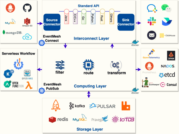 这仅仅是一个最简单的例子:在微众银行的系统里,每时每刻各个模块之间都在互传消息。这100亿条消息要是真像刚才例子里那样“点对点传输”,分分钟就会把IT系统撑爆了。其实它们需要一个“顺丰”——搞一个模块专门来负责“收信”、“送信”。比如我是个短信模块,我就会订阅一个“主题”,叫做“消费”。这样,其他模块里凡是发生了消费行为,“顺丰”就会把它们一个不落地收集起来,统一推送给我,我再挨个给用户发短信,这不就行了嘛!话说,广胜面临的局面比邸帅稍好一丢丢,因为市面上虽然没有能完全满足需求的开源模块,但好歹有一个比较接近的,那就是阿里云开源出来的 RocketMQ。RocketMQ 代码非常简洁,相当于一个快递小哥。为了撑住巨大的数据量,同时为了满足金融行业的安全要求,广胜他们魔改一通,增加了一倍的代码量,把“快递小哥”改成了“快递公司”,这才成功嵌入微众的系统。眼看这个“快递公司”还存在规模上限,他们又继续魔改,变成一个可以无限扩充快递员的“超级快递公司”。至此,代码已经改到面目全非,老师傅们索性给这个模块重新起了个名字——EventMesh。你发现了没,EventMesh 的作用,也有点像“代码关节”——就是夹在系统之间,让它们配合更高效嘛!总之,就在2014-2018年之间,微众笼络了一群技术理想主义者,做了好多“关节模块”。老师傅天天埋头苦干,这些成果自然在世界范围内渐渐领先。眼看形势一片大好,“禅堂”里的 Henry 却眉头紧锁,他在推演一个问题:天天精进武艺自然没有问题,但武艺高强的人如果眼里只盯着自己,就有可能走火入魔,成了“老毒物”欧阳锋;侠之大者,为国为民,传授武艺,扶济苍生,恐怕更是武学奥义啊!