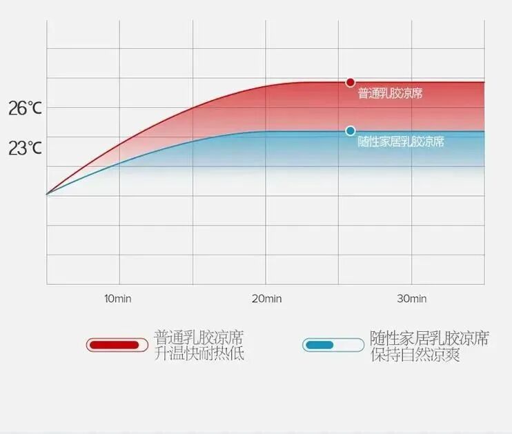 天然乳胶寝具之所以大受欢迎,就是因为它透气,防螨,弹性好,支撑性好。普通织物之所以睡着热,是因为散热跟不上,身体又在不停散发热气,所以越睡越热。而乳胶凉席内部,拥有成千上万个蜂窝状的气孔,比其它纤维空气流通更顺畅。就像一个天然的空调系统,能够及时排出肌肤与床垫、枕头接触产生的热气、汗气,起到“凉席”的作用,保持舒服凉爽。![]()