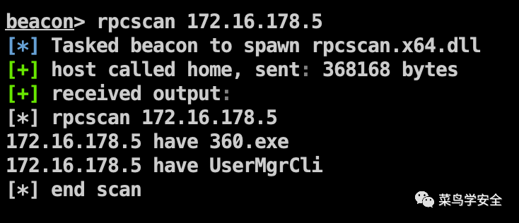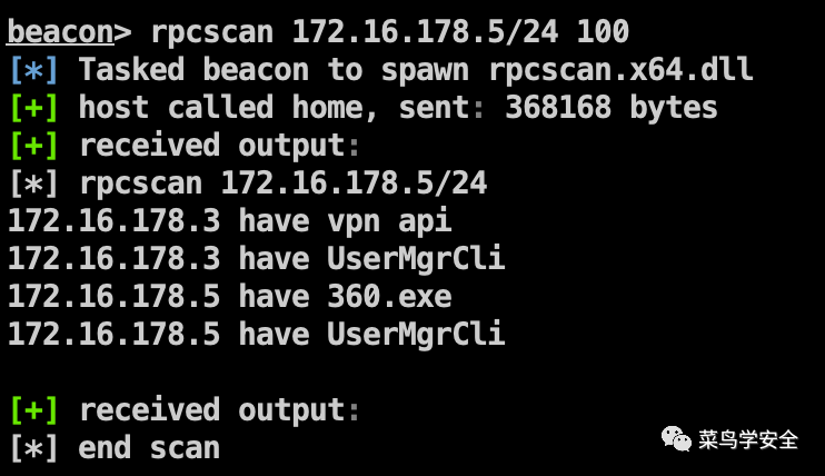 安装将rpcscan.dll和rpcscan.cna放同一个目录,后用CS导入CNA即可使用beacon> ? rpcscanUse: rpcscan [ips] [thread num]rpc in