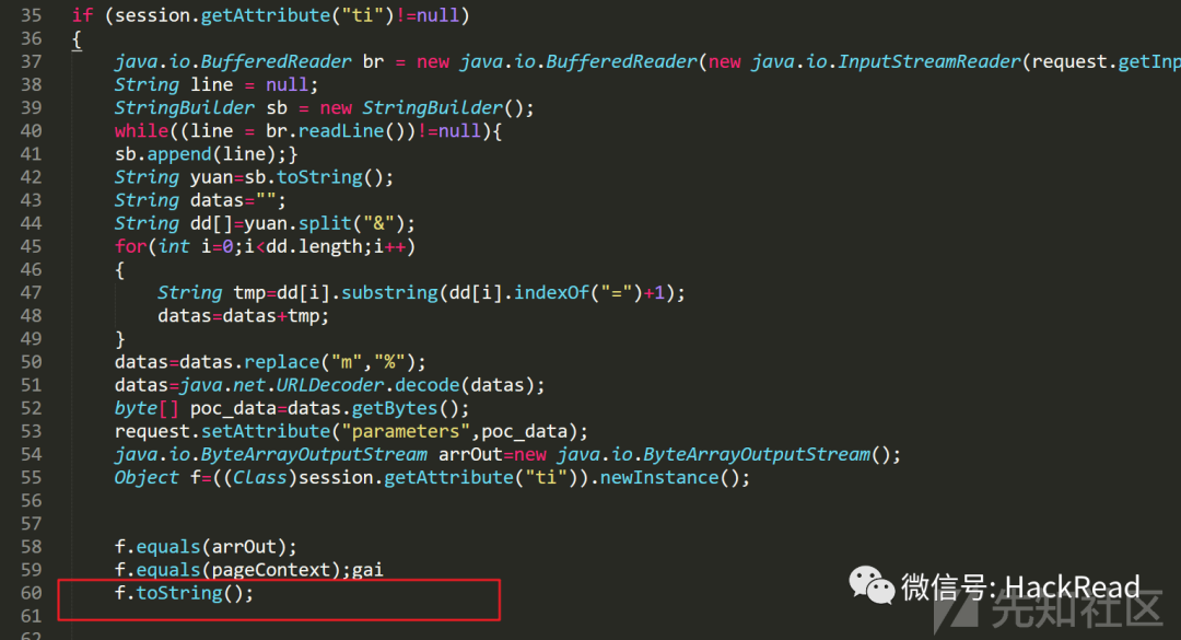 服务端接下来调用的是 f.equals(pageContext),传入的是一个javax.servlet.jsp.PageContext对象(这里就是主要的”解密“通信流量的地方):