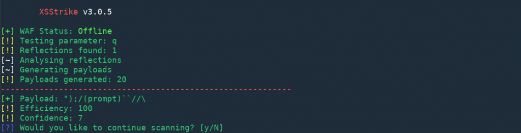 除此之外,XSStrike 还具有爬虫、fuzzing、参数发现和 WAF 检测功能。它还扫描 DOM XSS 漏洞。