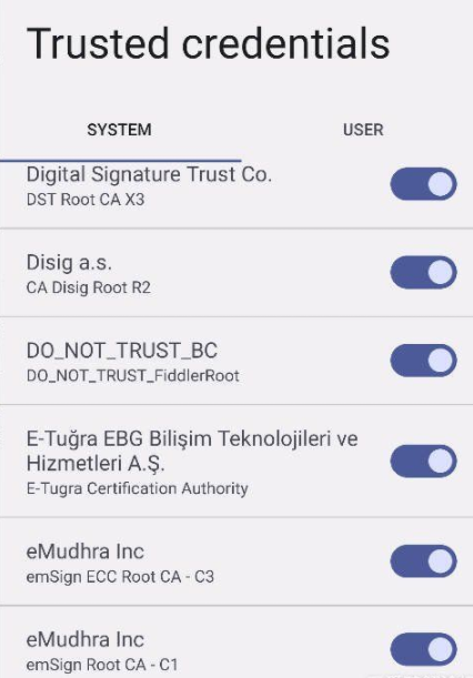 先上传crt,添加crt为用户级证书,再用find找到/storage/emulated/0/cacert/root_X0f.crt