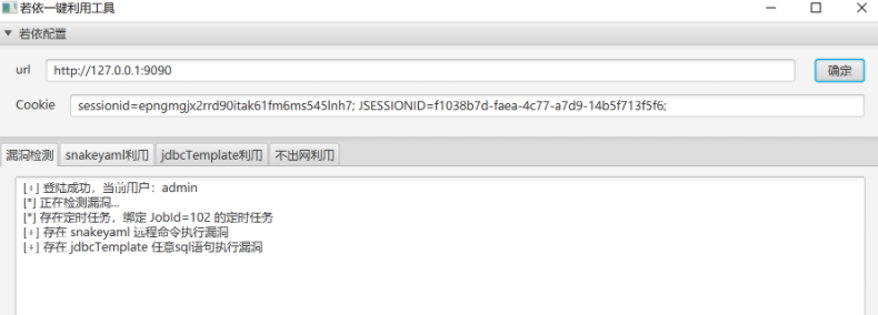 前几天审的若依的后台定时任务黑名单绕过漏洞,整合了一个小工具,提供了几个功能: