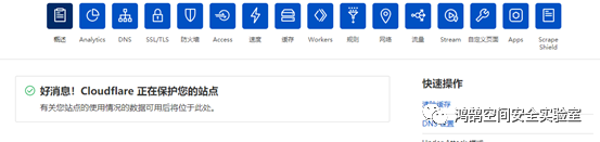 以上操作完成之后回到cloudflare进行下一步将https重写、始终使用https、Brotli都关闭并保存,之后点击检查名称服务器点击检查之后过一会儿刷新一下页面,出现以下就代表成功了