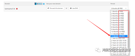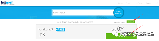 域名自己随便写一个喜欢的即可,检查可用性,然后点击selected,Checkout即可,1-12个月都是免费的