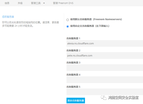 去freenom中删除dns名称服务器,添加为cloudflare的名称服务器