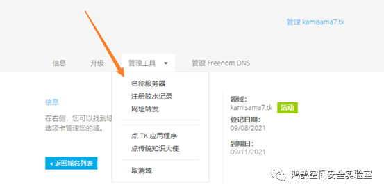 到freenom中修改dns服务器